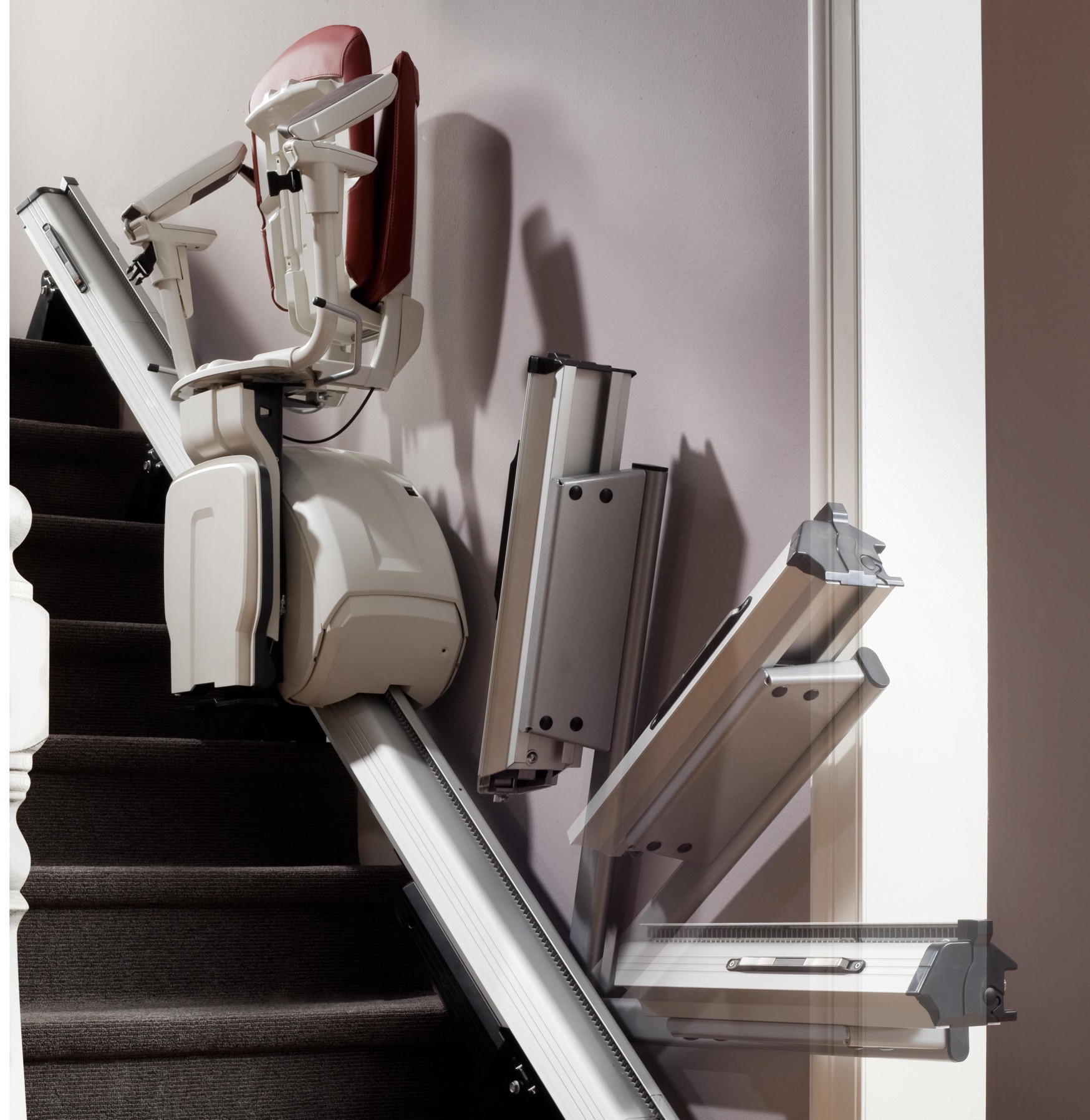 L'equip consta d'un monorail d'alumini de tacte suau i net que s'integra perfectament en tots els entorns. La cremallera semioculta queda protegida de la brutícia i la pols augmentant la seva eficàcia i durabilitat. El rail pot superar inclinacions des 28º a 53º. En els casos que l'espai inferior del rail pugui ocupar el llindar d'una porta o passadís opcionalment es pot dotar a l'equip d'un rail abatible motoritzat que baixarà automàticament quan utilitzem la cadira en descens i pujarà quan desitgem que es replegui.